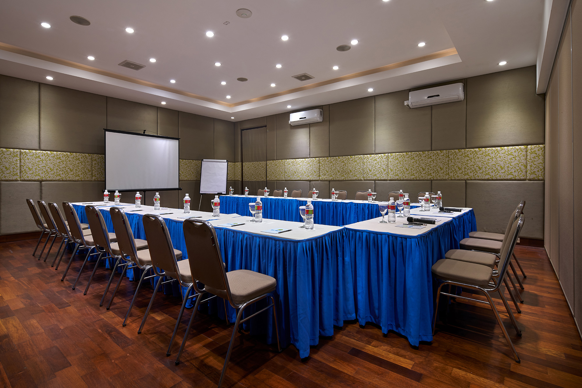 Praja Hotel provides a modern meeting room that comfortably accommodates up 100 delegates in a theatre style set up. This multi-purpose facility is supported by a LCD projector, WiFi and other essential amenities. It is fully soundproof and has an elegant wooden floor along with windows to provide natural light. There is an adjacent reception area, a charming rooftop terrace and bathrooms to complement this meeting venue. It can also be used for social occasions such as small weddings as well as informal gatherings.